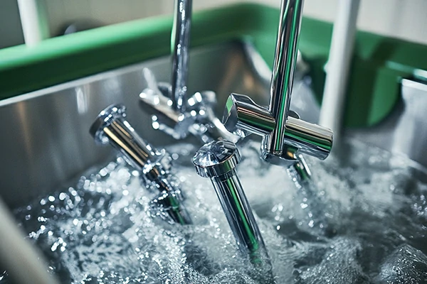 Specialized metal components for bathroom spaces, such as glass door hinges and glass door handles.