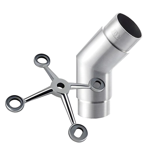 Curtain wall support and connection components such as spider fittings (spiders) and swivel joints.